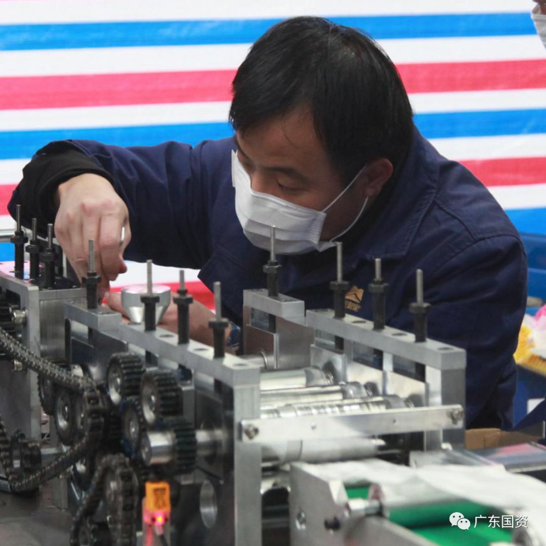 国机智能公司吴科龙在进行口罩机调试