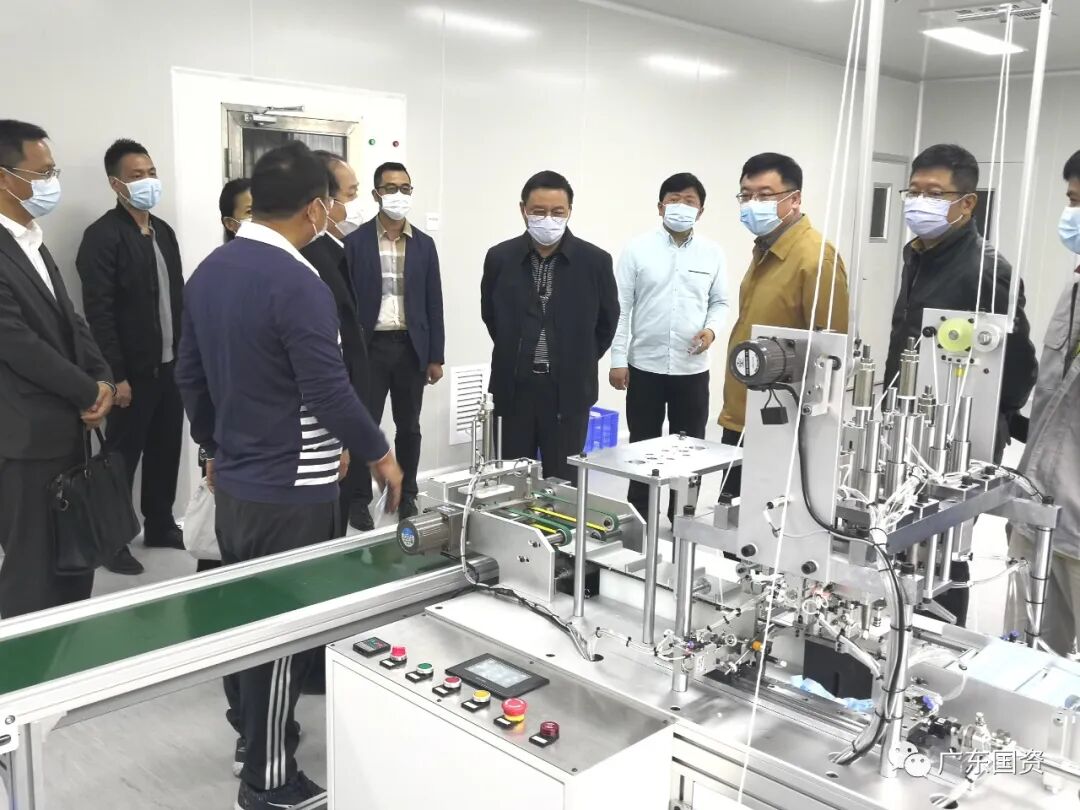 3月7日上午,成人网 主任、党委书记李成,副主任、党委委员王晓昀率相关人员赴增城区中新镇调研广业检测集团下属企业省化纤所口罩生产项目。广业集团党委书记、董事长黄敦新参加调研。